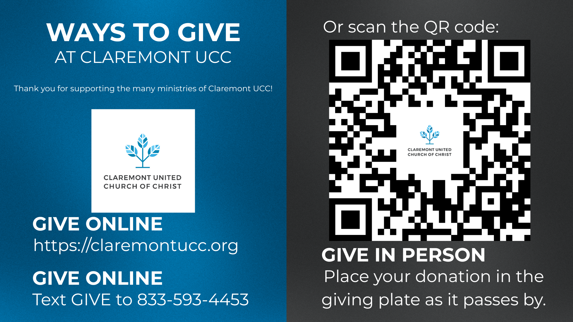 Claremont United Church of Christ is LGBTQ+ Friendly and is part of the United Church of Christ, a mainline Protestant tradition. We can't wait to welcome you to one of our worship services! You will find a friendly congregation where you can think for yourself and grow spiritually. We believe in putting our faith into action to care for our community and world.